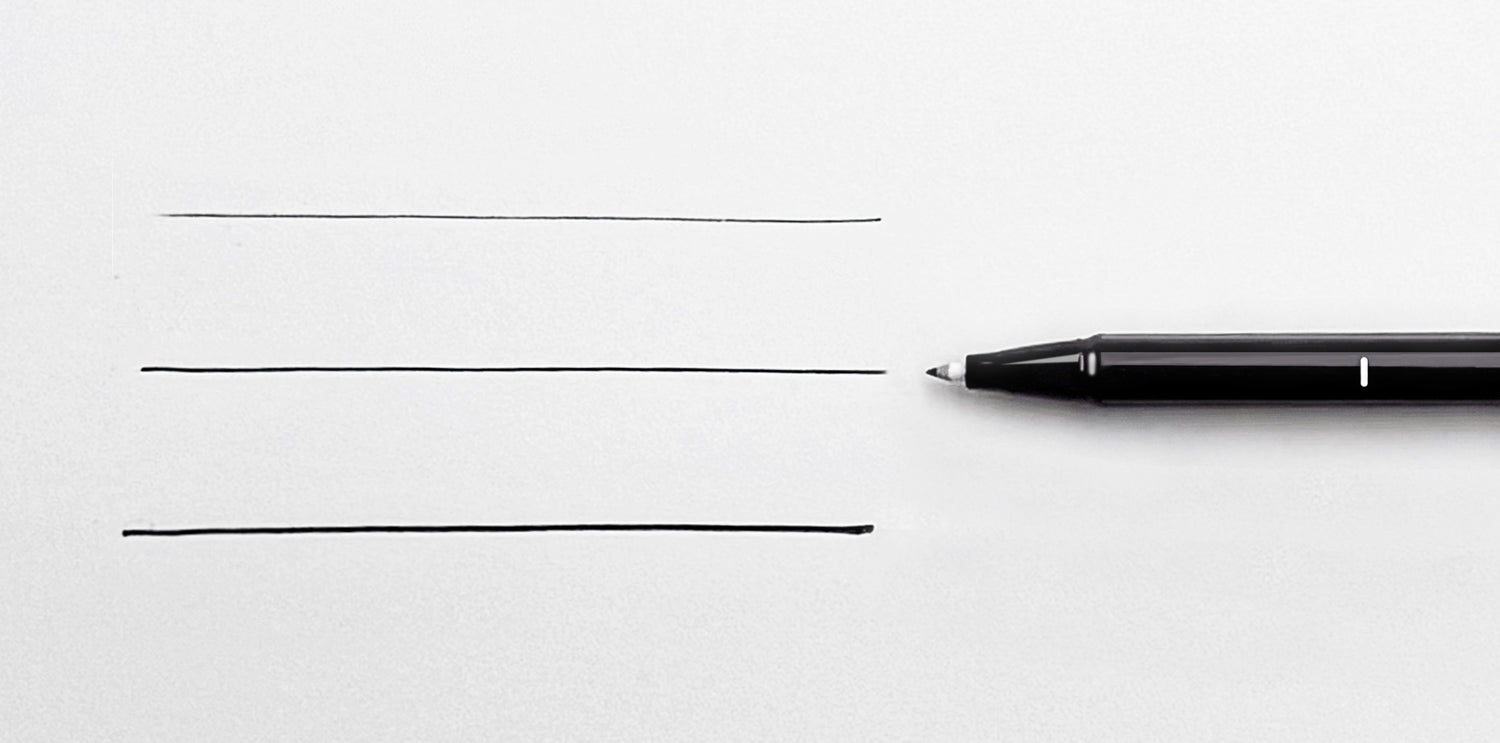The three lines on the barrel guide your fingers into the ideal position. Great for both short strokes and long curves with stable control.