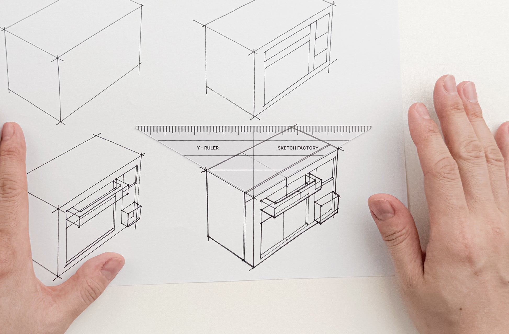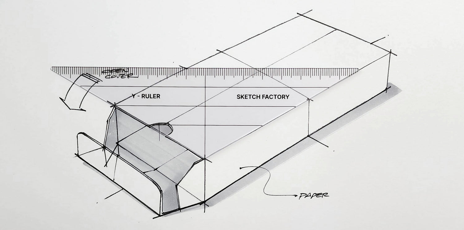 When sketching the base box of any form, start by aligning the central Y-line at a 120° angle. This will guide your drawing into the most balanced and readable perspective.