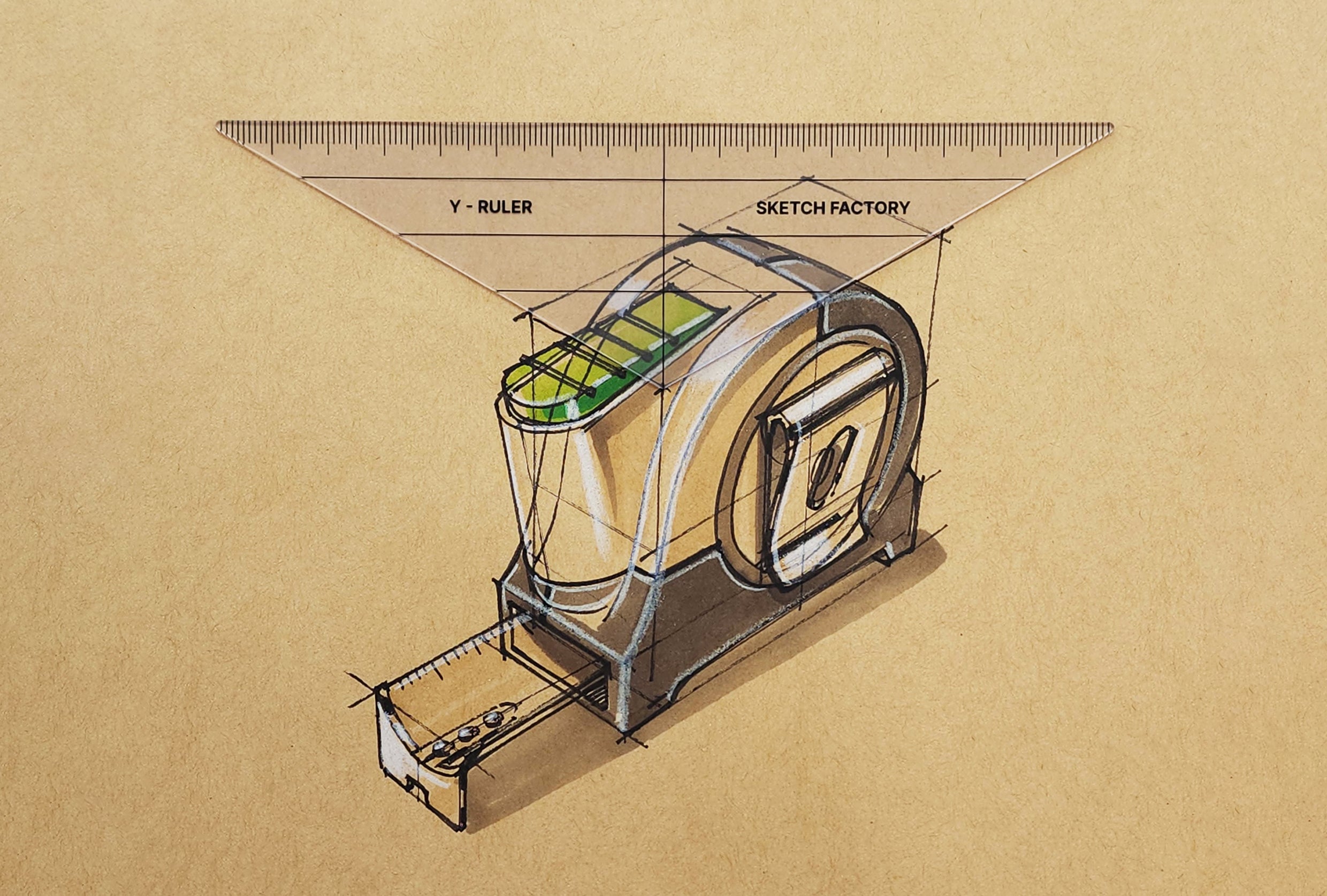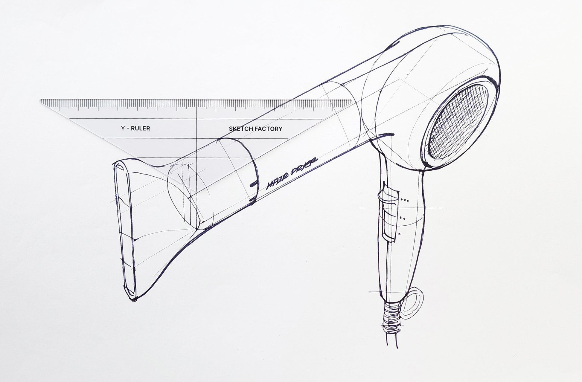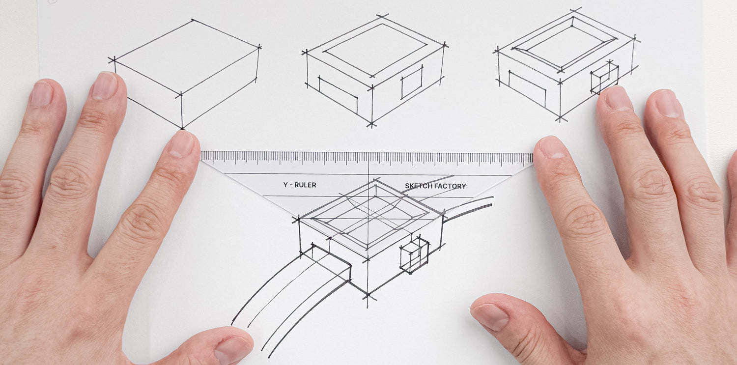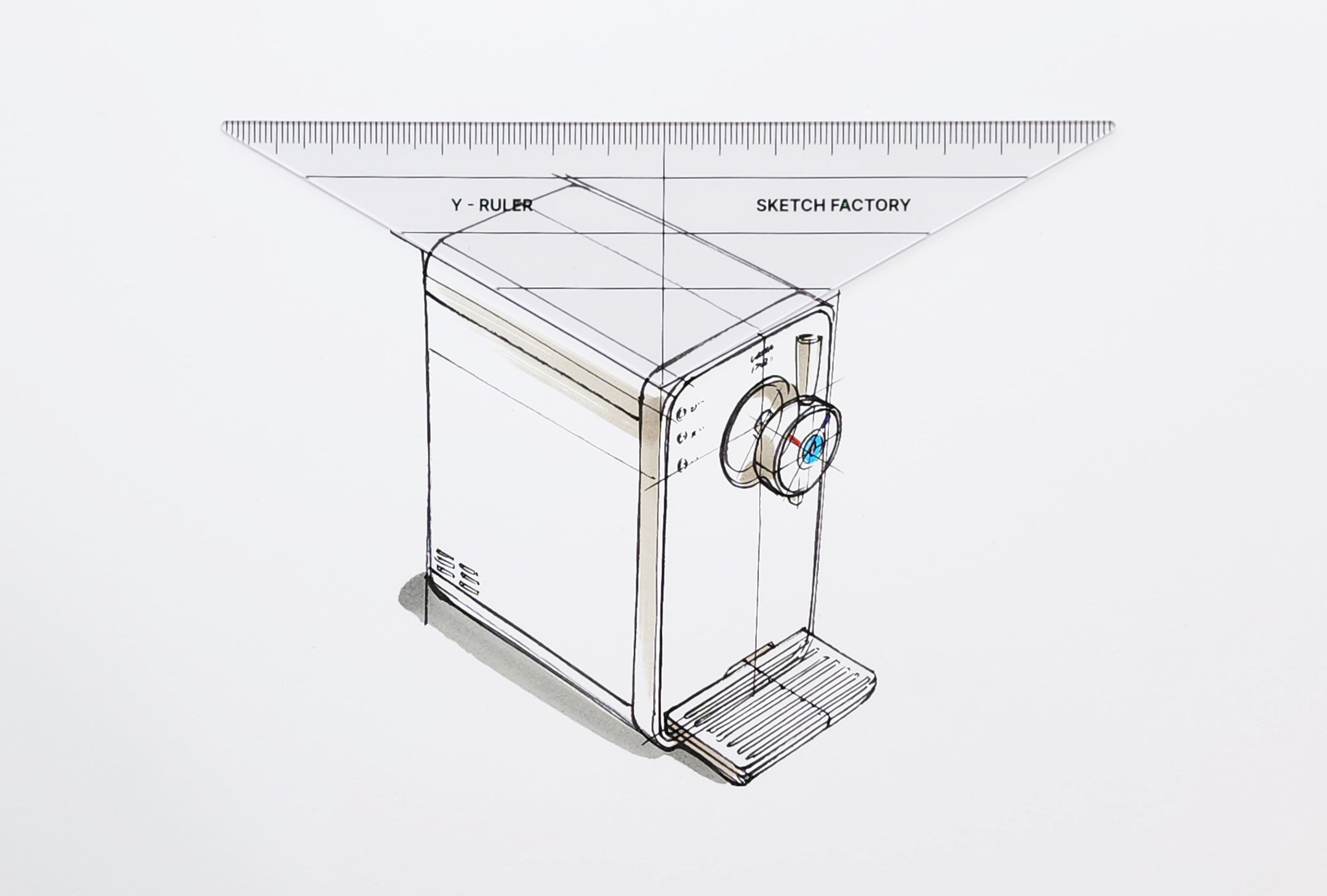 Try sketching at a 120° angle for a clear and efficient view of each side of the product.